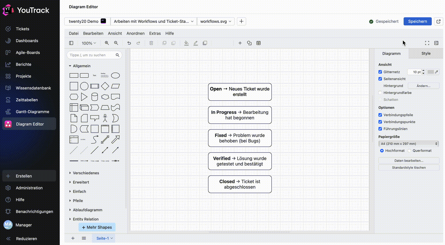 Diagrammi Draw.io direttamente nei problemi di YouTrack e negli articoli della knowledge base. Per una visualizzazione fluida dei tuoi processi e delle tue idee.